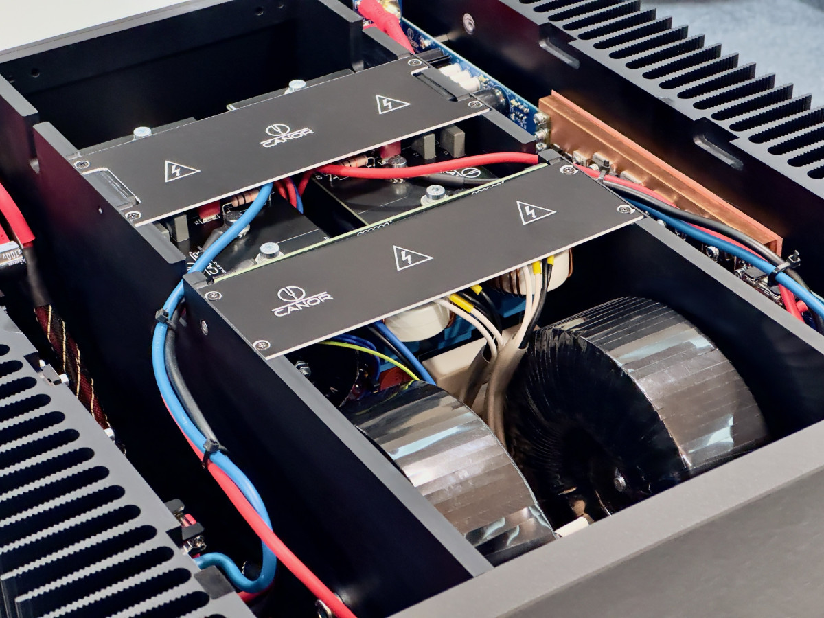 The Canor Virtus S1S stereo power amplifier merges innovative technology with high-grade materials. With its dual mono configuration and Class AB design, the Virtus S1S sets a new standard for power amplifiers. This configuration enhances stereo enjoyment, providing excellent channel separation and minimal crosstalk, resulting in impressive sound fidelity, clarity, and precision.