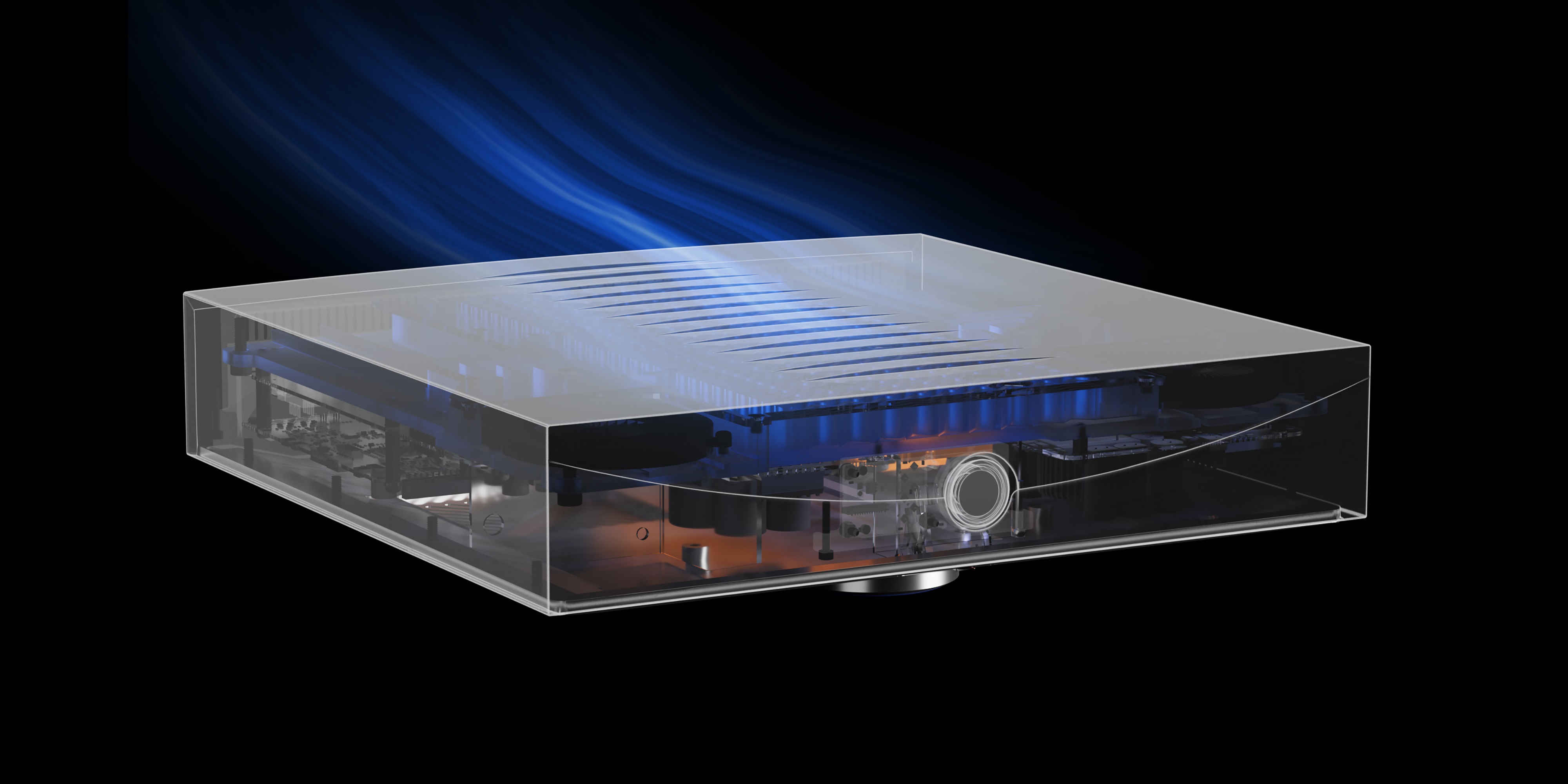 The Klimax Solo 500 features a brand new thermal management system, i.e. a hybrid cooling matrix. This allows the amplifier to adapt to the demands placed on it and remain cool and whisper-quiet at all times.