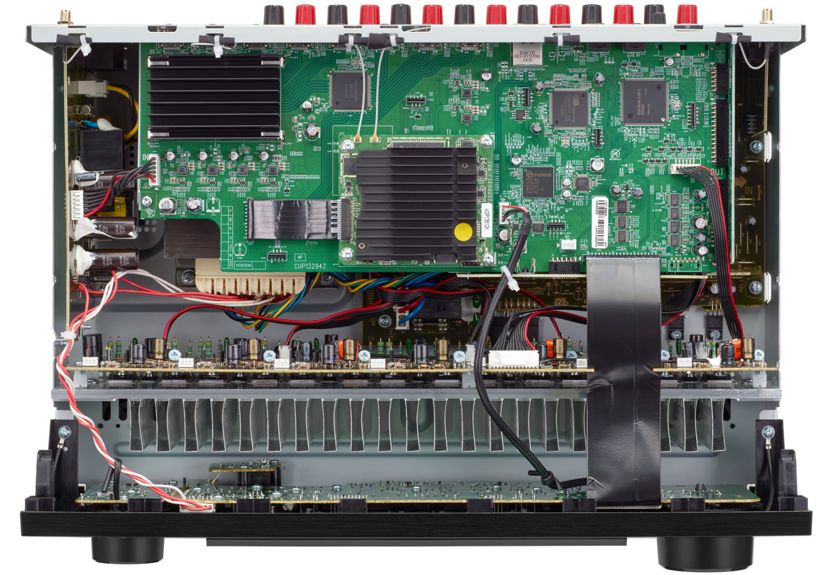 The AVC-X2850H measures 434 x 341 x 167 millimeters (W x D x H, antenna horizontal) and weighs 9.5 kilograms. It is available only in black.