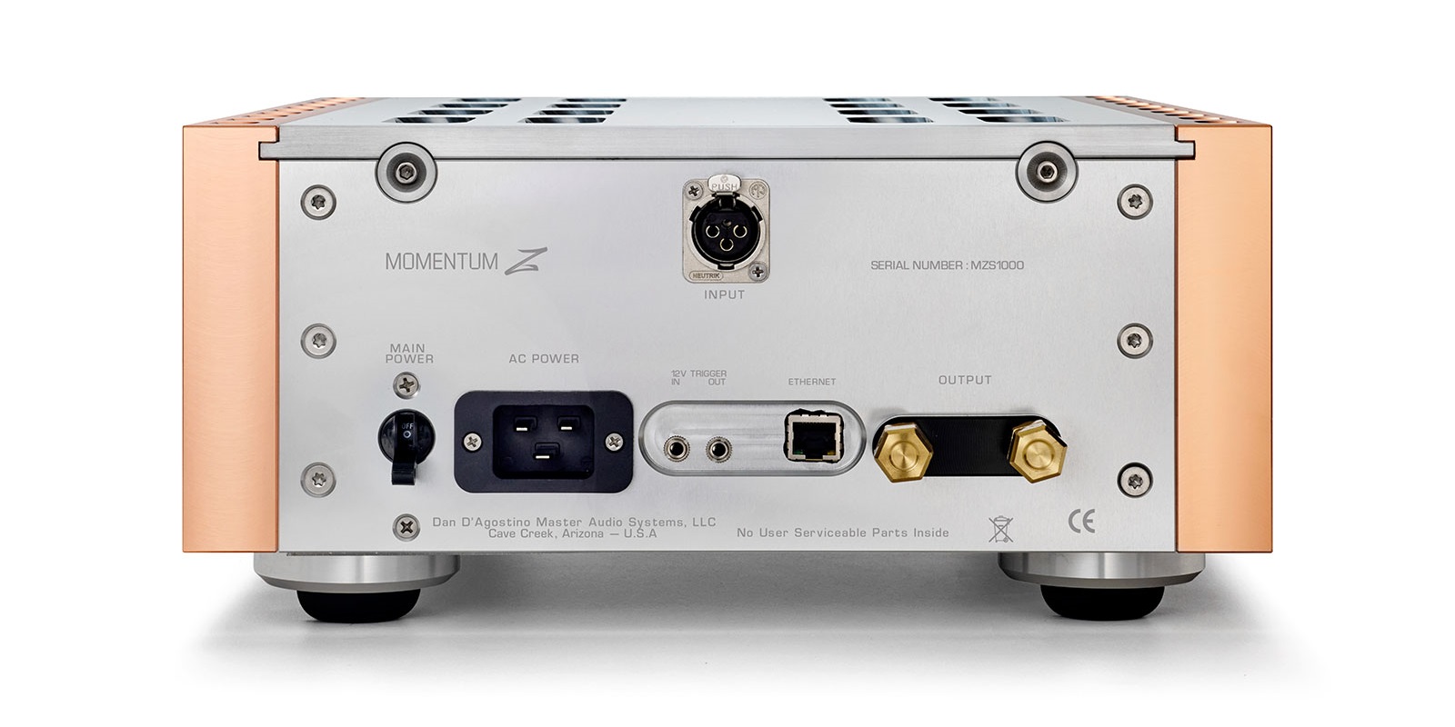 American audio manufacturer Dan D'Agostino, Master Audio Systems, has unveiled the Momentum Z Monoblock amplifier, a new flagship model marking the fifteenth anniversary of the Arizona-based high-end audio brand. The Momentum Z can deliver 500 watts into eight ohms and operates entirely analog. Digital control processes have been eliminated from the signal path. The CNC-machined copper sides are not only aesthetically pleasing but also contribute to excellent heat dissipation and thermal stability.