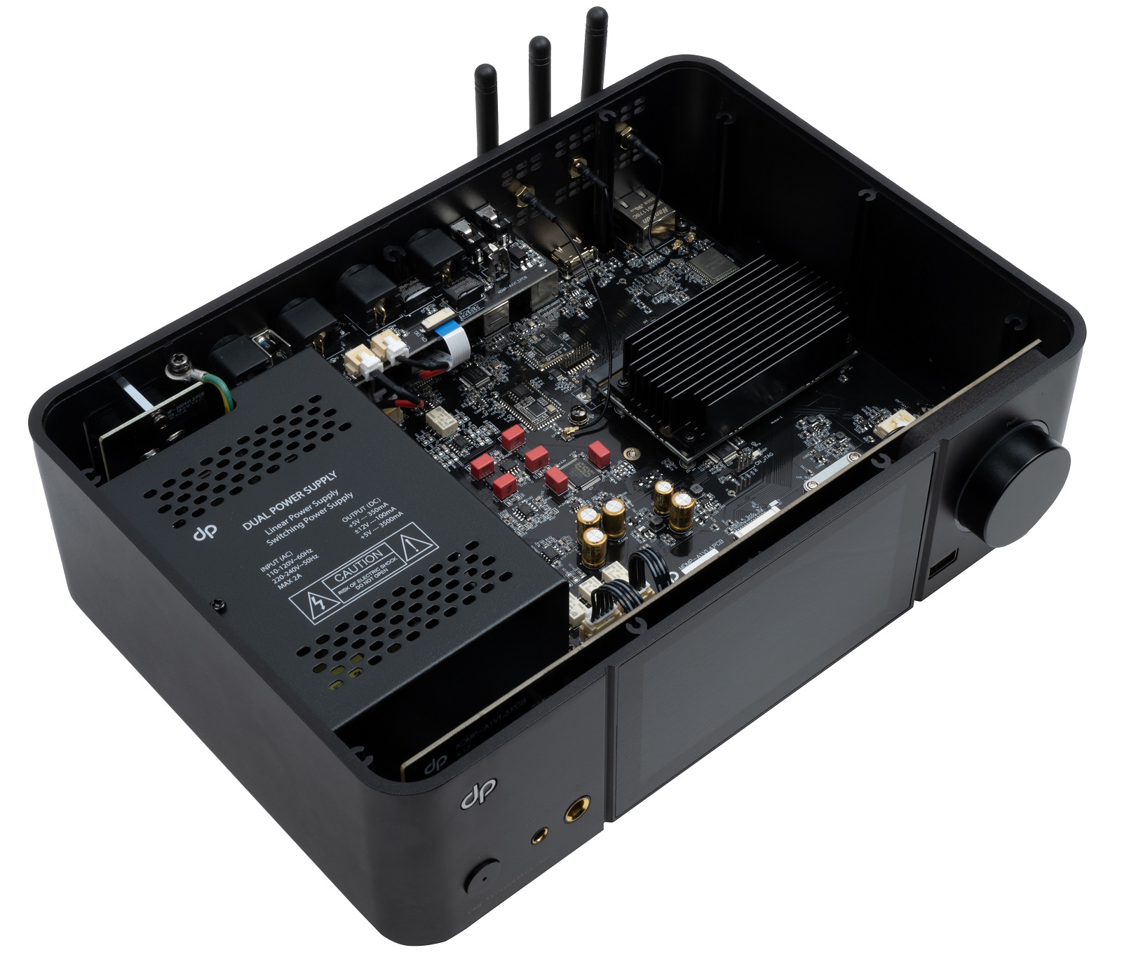 The DMP-A1 utilizes a dual power supply system. According to the manufacturer, the device features Dorpo's special, high-quality linear power supply for the audio circuits. A separate, low-noise switching power supply powers the digital circuits. According to Dorpo, this configuration guarantees optimal performance. It also ensures that the DMP-A1 automatically adapts to global mains voltage standards. As a result, manual adjustment of the input voltage is no longer necessary.