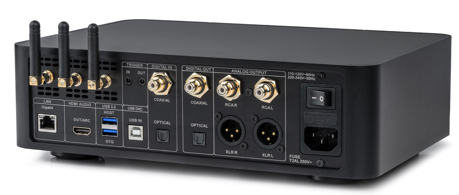 In addition to streaming, the DMP-A1 supports various USB drives and network storage devices, and features a built-in slot for a fast M.2 NVME 3.0 2280 SSD up to 8 TB. When used with compatible audio devices, the convenient 12V trigger input and output allows the entire system to be switched on or off directly from the DMP-A1 with a single click.