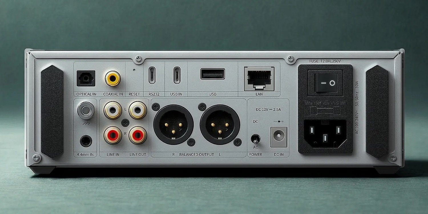 The rear panel features various digital and analogue inputs. When the K15 is used as a preamplifier or DAC, the analogue music signal is output via a RCA output and an XLR output. There is also Bluetooth connectivity with support for aptXHD and LDAC. Network connection can be established via a cable (RJ45 Ethernet) or via 2.4G/5G dual-band WiFi. The K15 understands Apple AirPlay 2 and supports Roon.