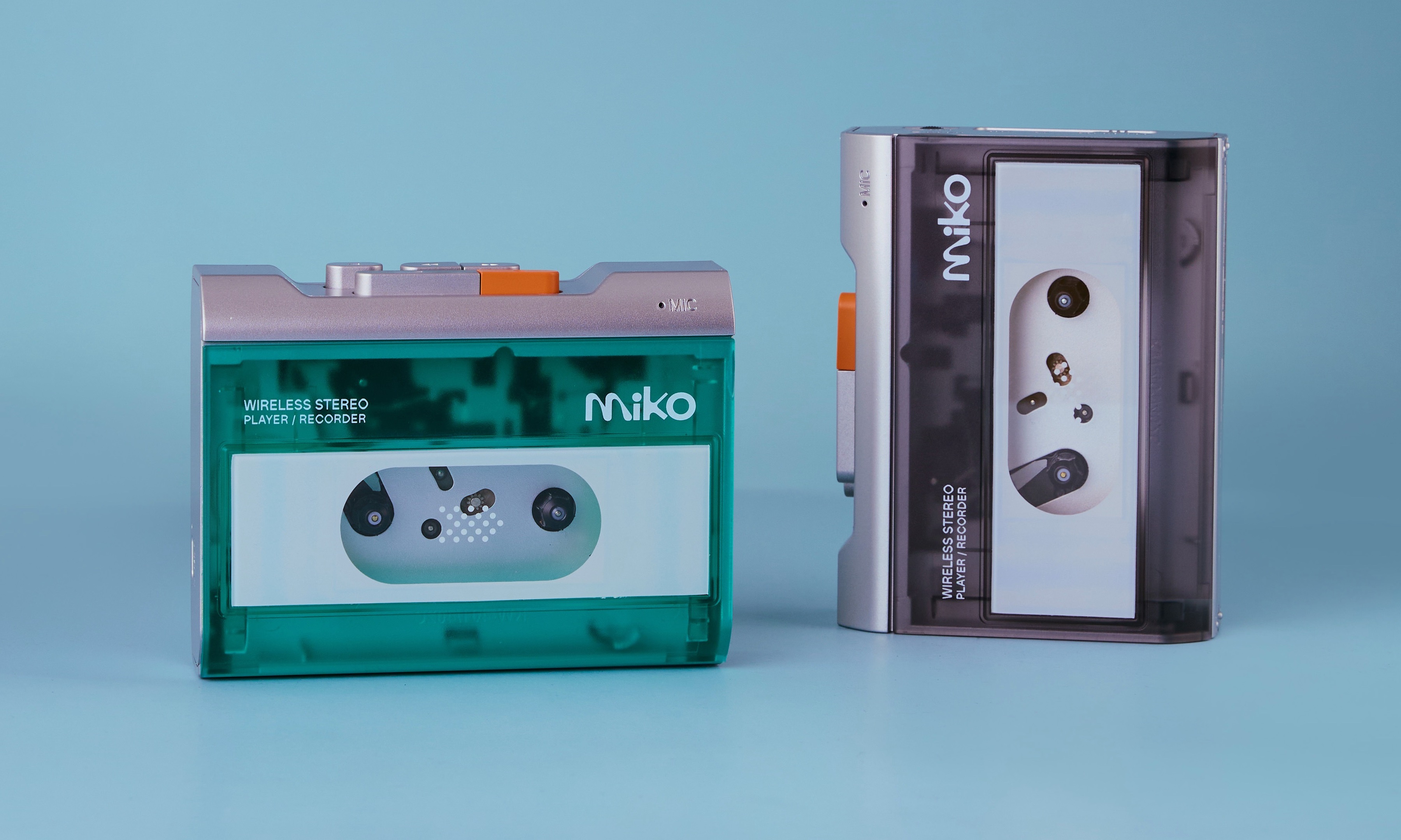 Gadhouse offers the Miko Cassette Player in two versions: smoke grey and mint green.