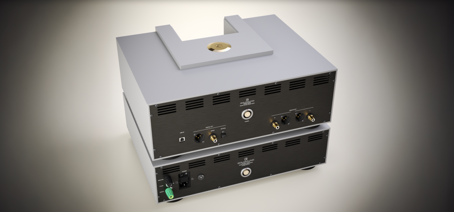 At the heart of the Eidos Excellence SACD lies the unique combination of ultra-precise electronic architecture and the mechanics of the (SA)CD transport. This synergy guarantees sound quality, quietness, and stability that elevates the player to a class of its own. The SACD format, which stores audio in the high-resolution DSD standard at 2.8 MHz, is reproduced with exceptional clarity thanks to its low jitter level, vibration-suppressed transport mechanism, and specialized digital-to-analog converters (DACs). Each channel has its own dedicated DAC. According to Goldmund, the Eidos Excellence is one of the most accurate SACD players currently available.