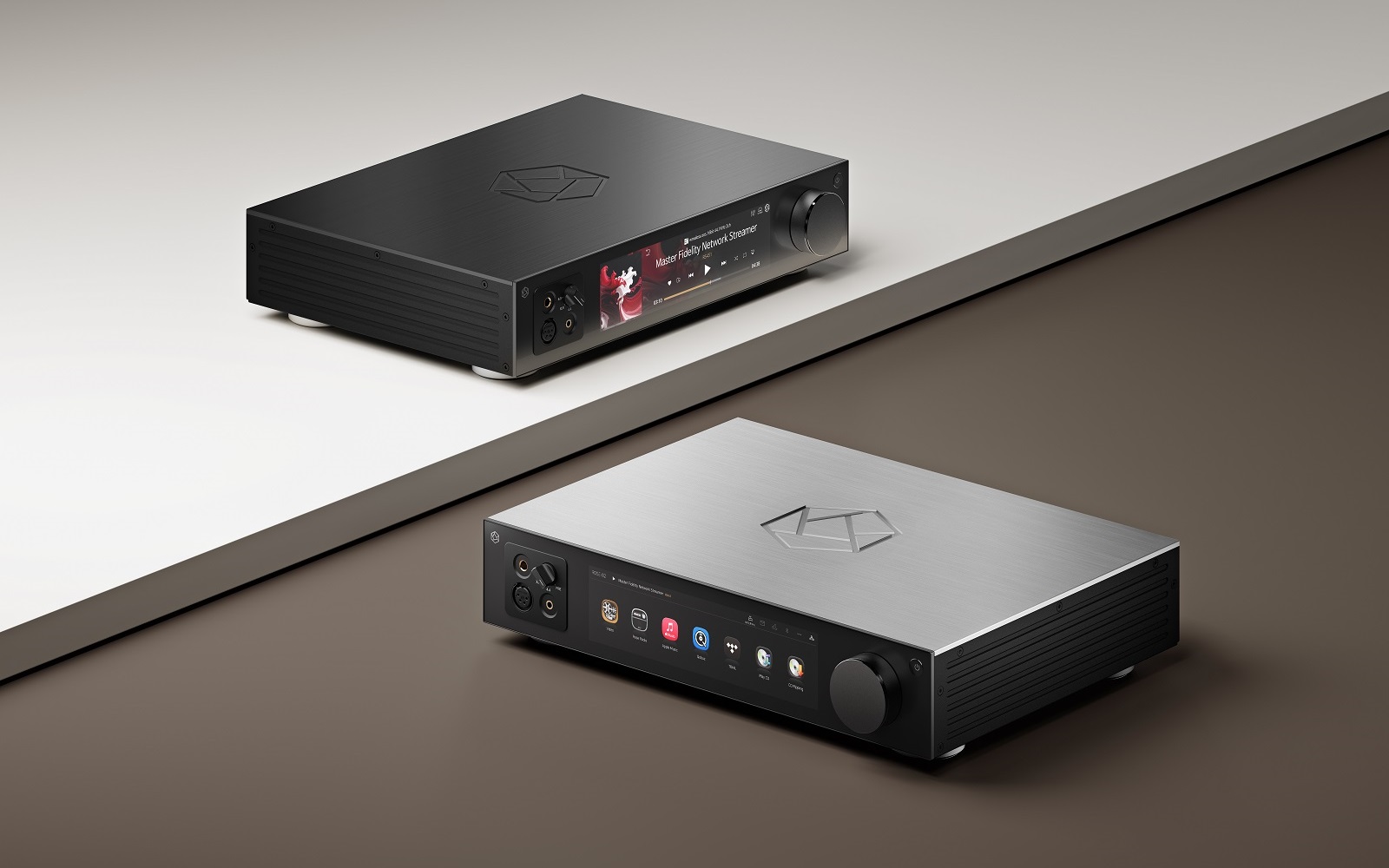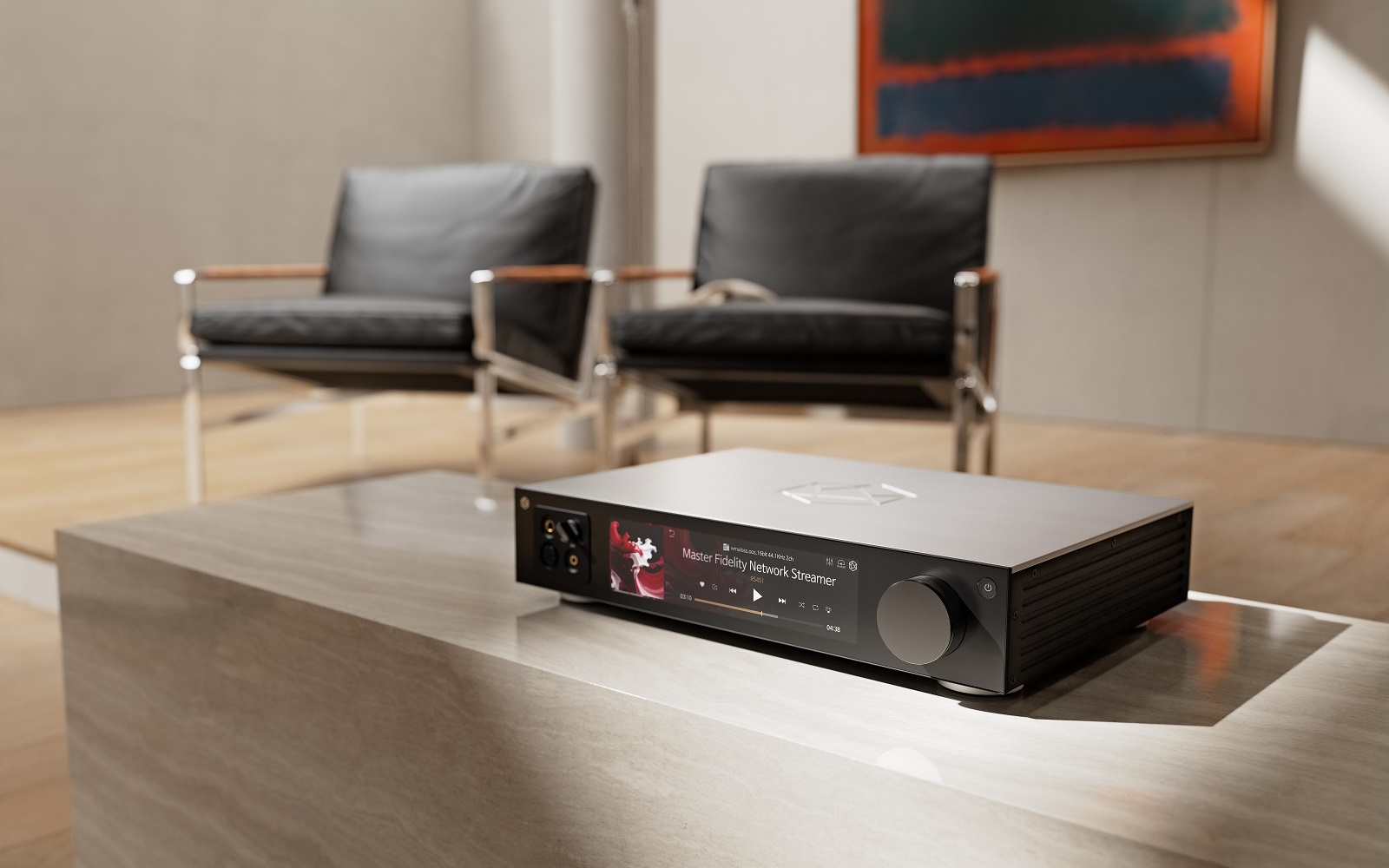 The signature HiFi Rose aluminum cabinet, measuring 92 x 430 x 337 millimeters (H x W x D), promises reassuring quality matched with high aesthetic appeal. The front panel features a high-resolution 8-inch information display with a wide viewing angle, flanked by a trio of headphone jacks on the left side, i.e. 1 x 6.35 mm jack for asymmetrical connection and 4.4 millimeter and mini-XLR for balanced connection. A precisely machined, easy-to-reach volume knob is mounted on the right side.