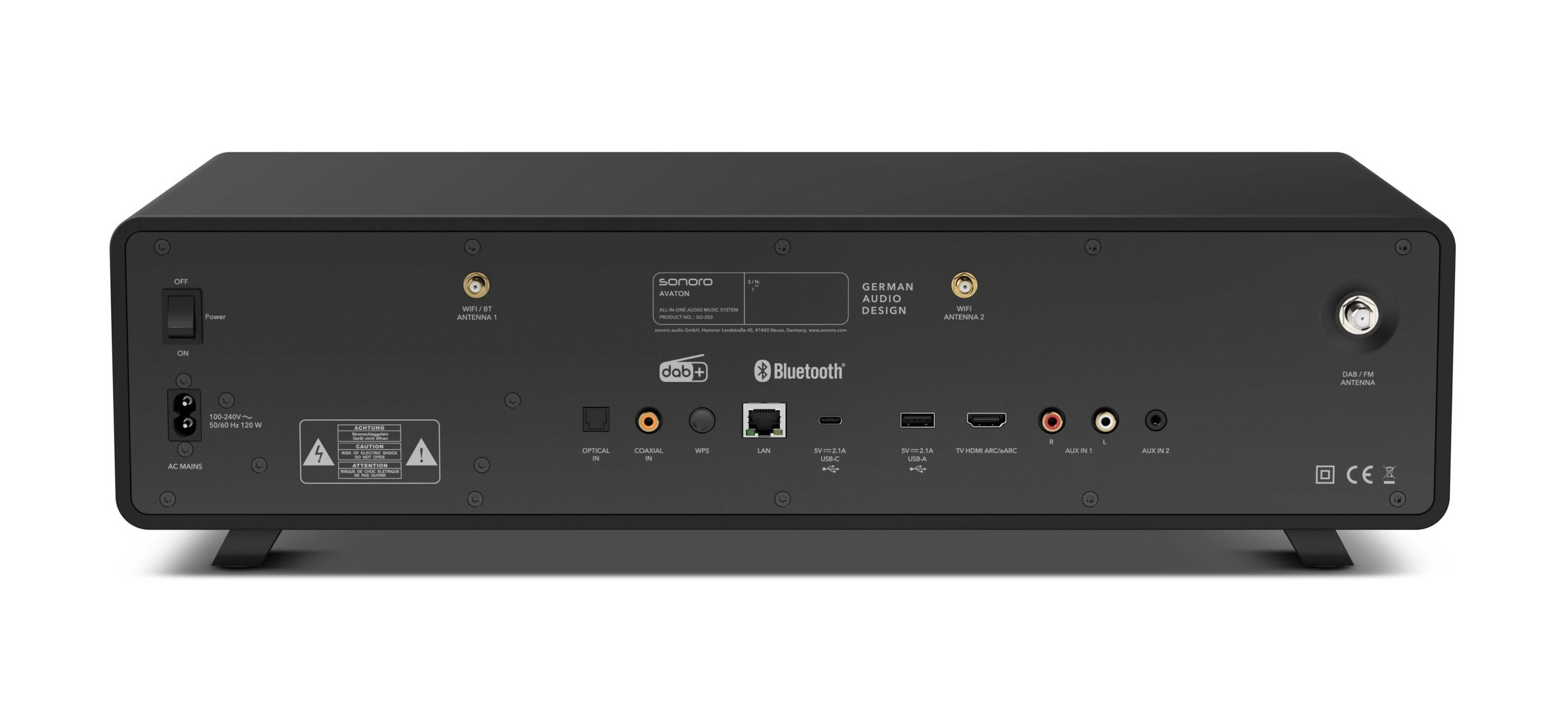 The Sonoro Avaton features several interfaces for external sources, including an HDMI port for connecting a television, with support for ARC and CEC (for remote control). In addition to a USB-A port, the new Sonoro Avaton also has a USB-C port.