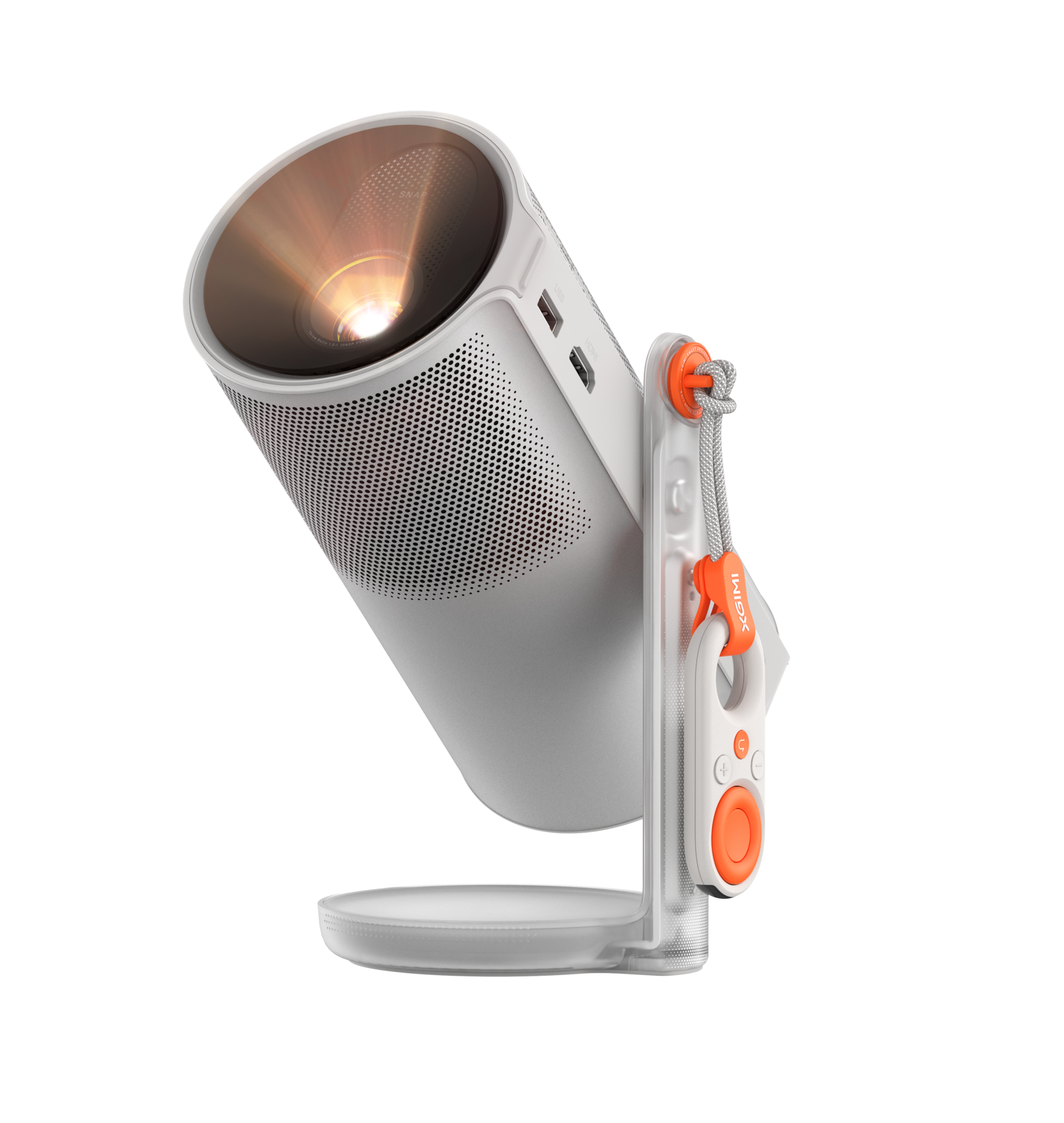 According to the designers, the XGIMI MoGo 4 distinguishes itself by an innovative design with a compact size, fresh look and light weight. The sturdy metal slide rail offers both flexibility and stability, while the 360 degree rotatable stand makes it possible to project onto the ceiling. Compared to the MoGo 3, this model is equipped with a built-in battery, good for 2.5 hours of video enjoyment or six hours of music. A handy addition is the mini remote control, in addition to the standard version, ideal for use on the go or in speaker mode.