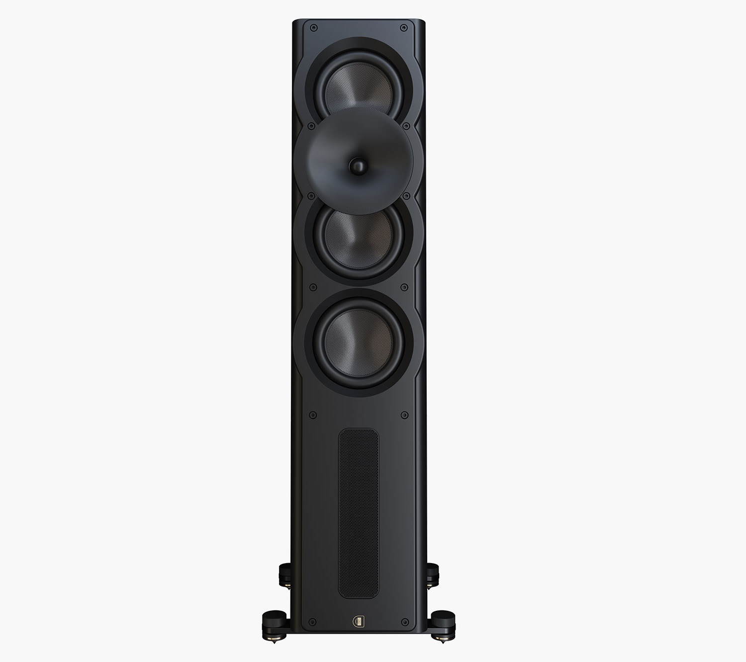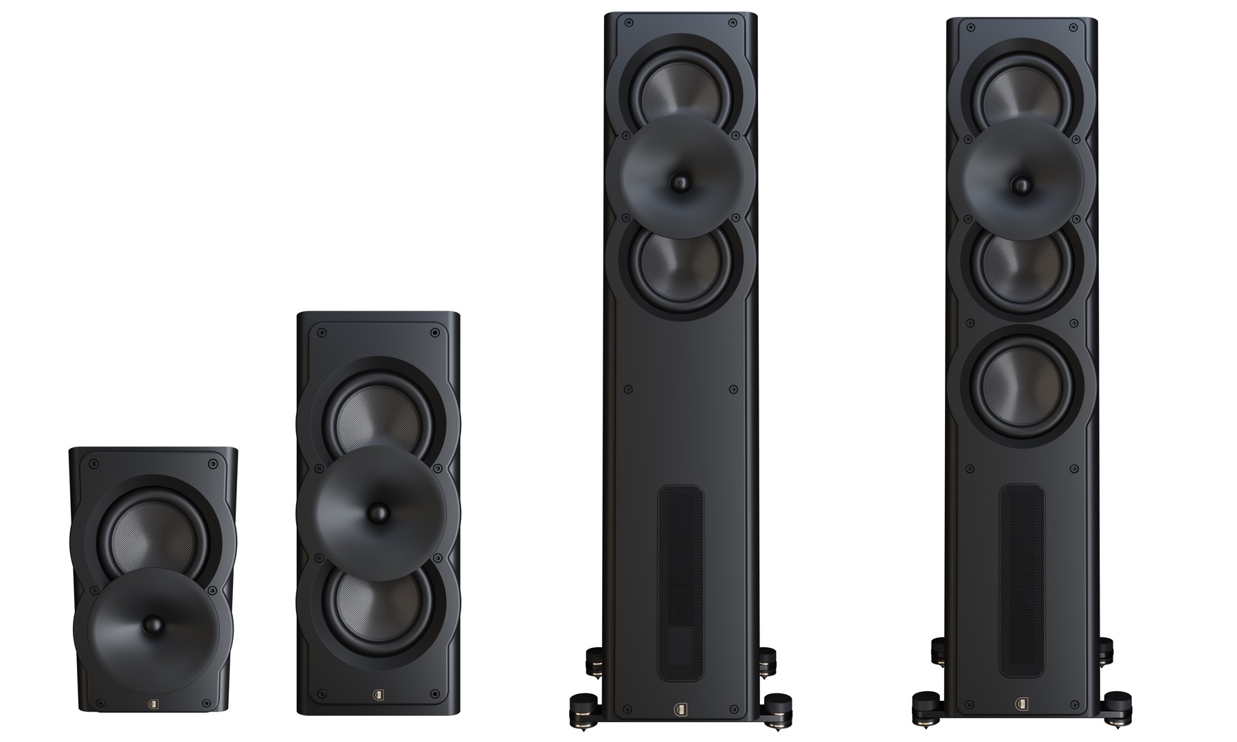In the bass range, all models in the series use 215-millimeter drivers with carbon fiber diaphragms. The low weight and high rigidity of these diaphragms contribute significantly to impulse fidelity and tonal precision.