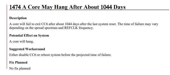 AMD EPYC freezes after 1044 days of continuous use and no one will fix it
