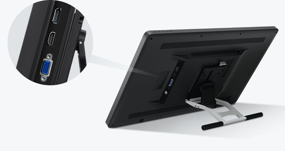Connectivity and compatibility will not be a problem with the Huion Kamvas Pro 24, since it has a USB 3.0 port , HDMI and Display Port to connect to other devices, as well as a VGA for backward compatibility reasons.