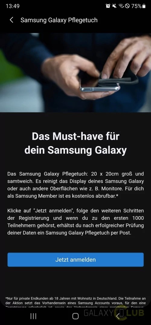 The South Korean giant has sent e-mail notifications to Galaxy owners in Germany inviting them to get a branded 20 × 20 cm screen-cleaning cloth for free. To do this, you need to apply in the Samsung Members app.