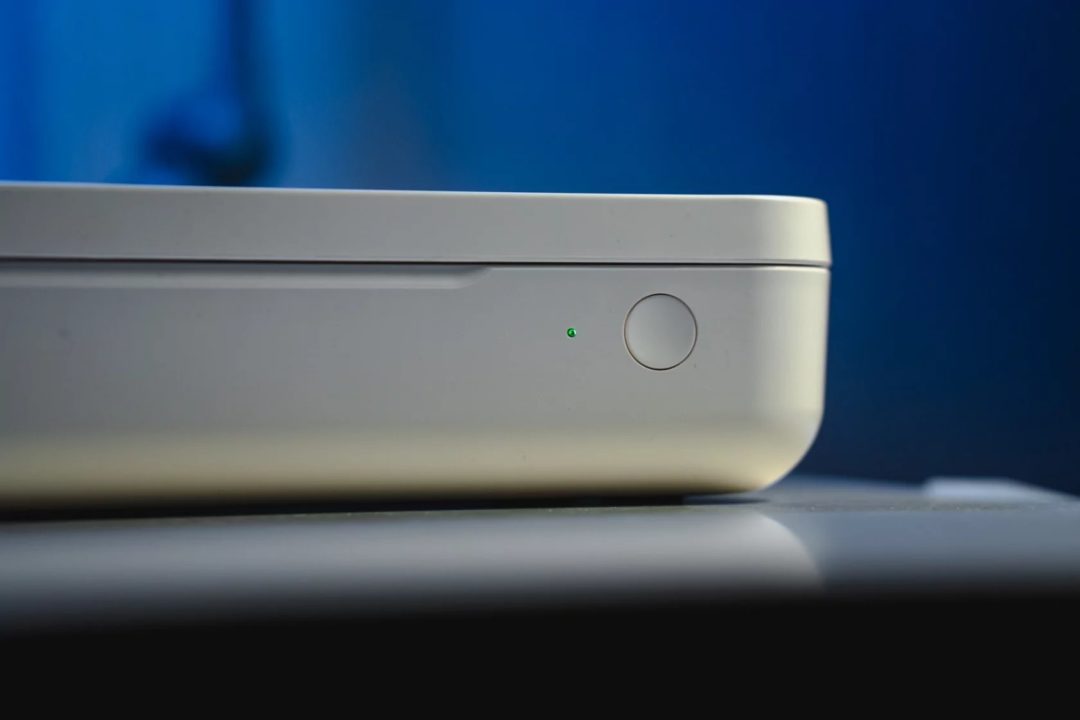 The Samsung box looks extremely discreet. It is made of dense white plastic, which hardly collects fingerprints, but willingly attracts dust. Due to its small dimensions (228 × 133 × 49.5 mm) and weight (369 grams), the sterilizer can be placed anywhere: on a table, bedside table and even at the entrance to an apartment. The only limitation is that you need an outlet. By the way, the sterilizer is powered through the usual USB Type-C connector (the cable is included).