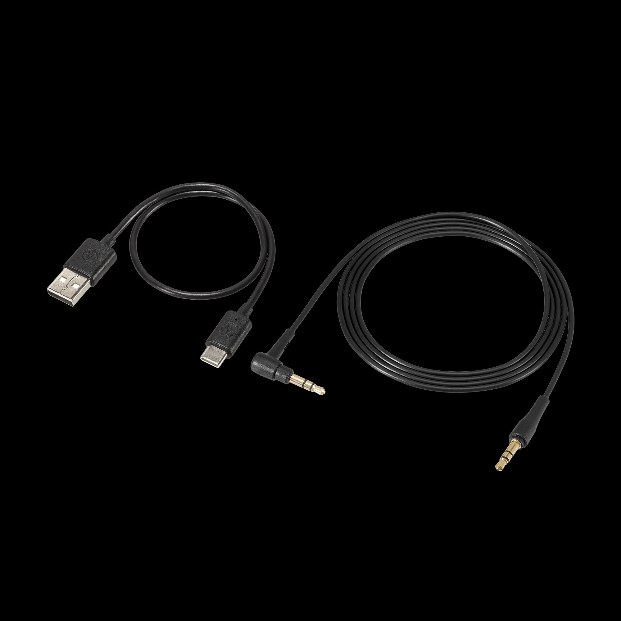 Cardboard is the main material in the middle of the box, and the headphones themselves are hidden in plastic bags. As for complete accessories, their selection is small. This is a USB charging cable (USB Type-A / USB Type-C, about 30 cm long) and an audio cable for wired connection (1.2 m long; 3.5 mm L-shaped plug). The audio cable is quite thin and connects only to the left cup. The box also contains various standard documentation.