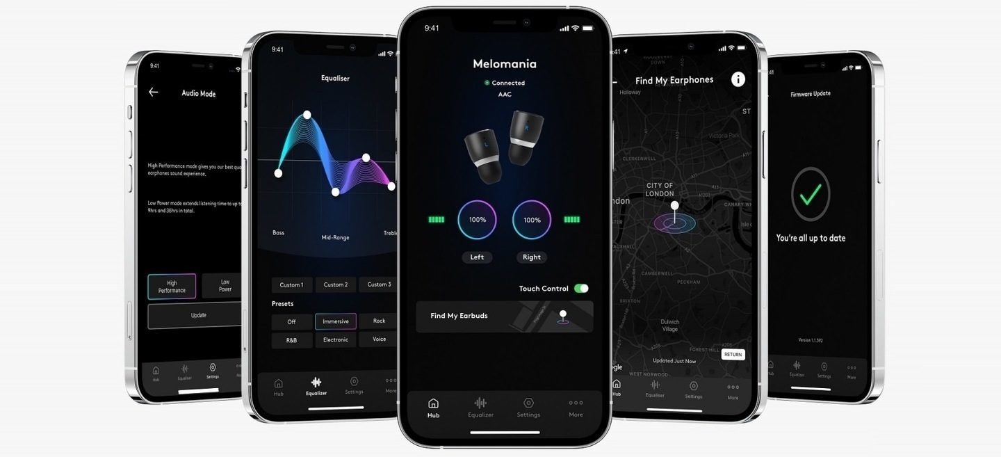 In the Melomania app for iOS and Android, the user can manually set the equalizer settings, check the charge of each earbud, enable the search mode, update the firmware and, most importantly, activate a special High Performance Audio mode, which should provide a wide soundstage, reduce noise and in general optimize sound. The manufacturer promised that nothing of the kind in this price segment has yet been encountered in terms of quality.