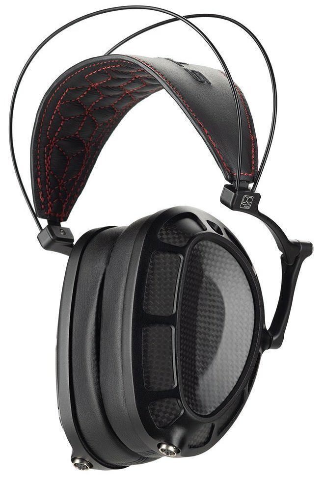 The matte black and red Stealth is crafted from carbon fiber, nickel-plated titanium and aluminum in the cups and hinges, with a leather headband and faux suede ear cushions. The headphones inherits the mechanics of the self-adjusting headband from the Aeon 2 , weighs 415 g and fits into a completely compact case.