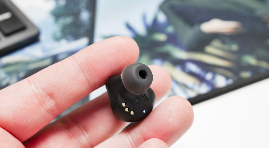 The earbud looks quite massive, and, as it turned out, weighs about 7 grams. It has a proximity sensor, an operation indicator (it’s not very clear why it was located in the inside) and several microphones. By the way, the case also has two indicators under the lid to recognize the charge of each of the headphones.
