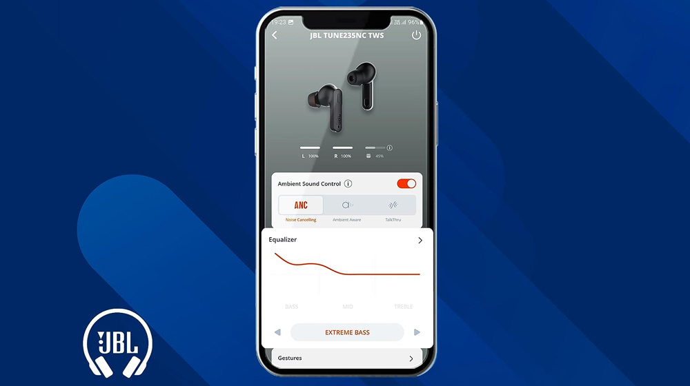 The JBL TUNE 235 NC are compatible with the JBL Headphones mobile app , which allows us to personalize the experience through sound equalization options, as well as being able to change touch controls, activate/deactivate noise cancellation, adjust the ambient mode, find your headphones, and switch between Bluetooth modes. In this sense, there is a mode that prioritizes music and another with low latency that is ideal for games.