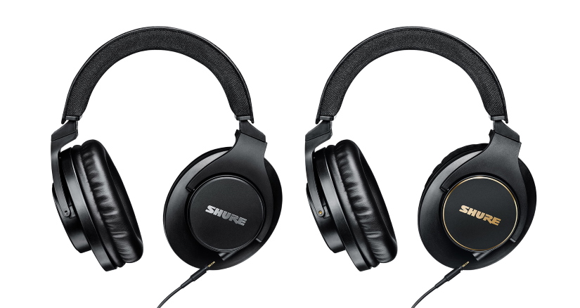 While 40mm dynamic drivers with neodymium magnets are used in both models, the SRH840A has a frequency response that Shure claims delivers professional-grade sound with rich bass, clean mids, extended highs from 5Hz to 25,000Hz and sensitivity of 97 dB/mW (@ 1 kHz). This premium model also features gold details on the cups.