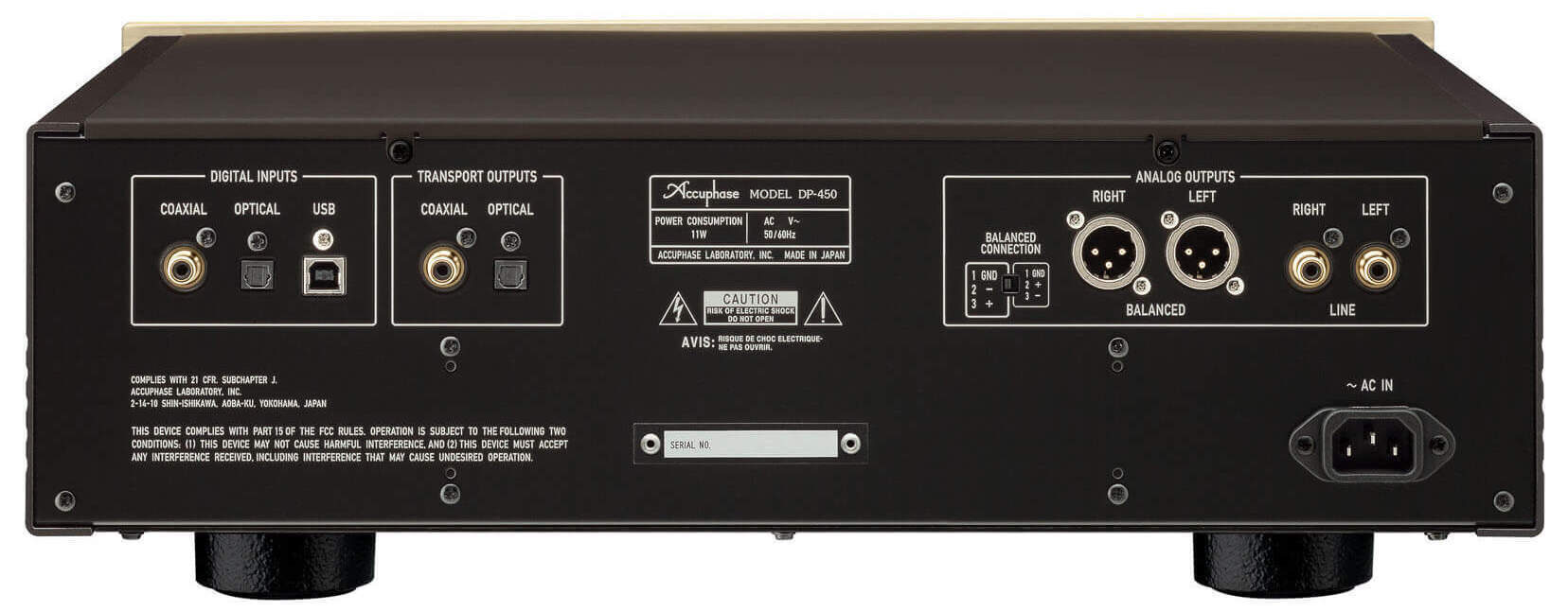 As a CD transport, the DP-450 outputs a digital signal to the coaxial and optical outputs. And since the DAC and CD-player sections can work separately, you can easily connect, for example, an Accuphase DG-68 digital equalizer between them .