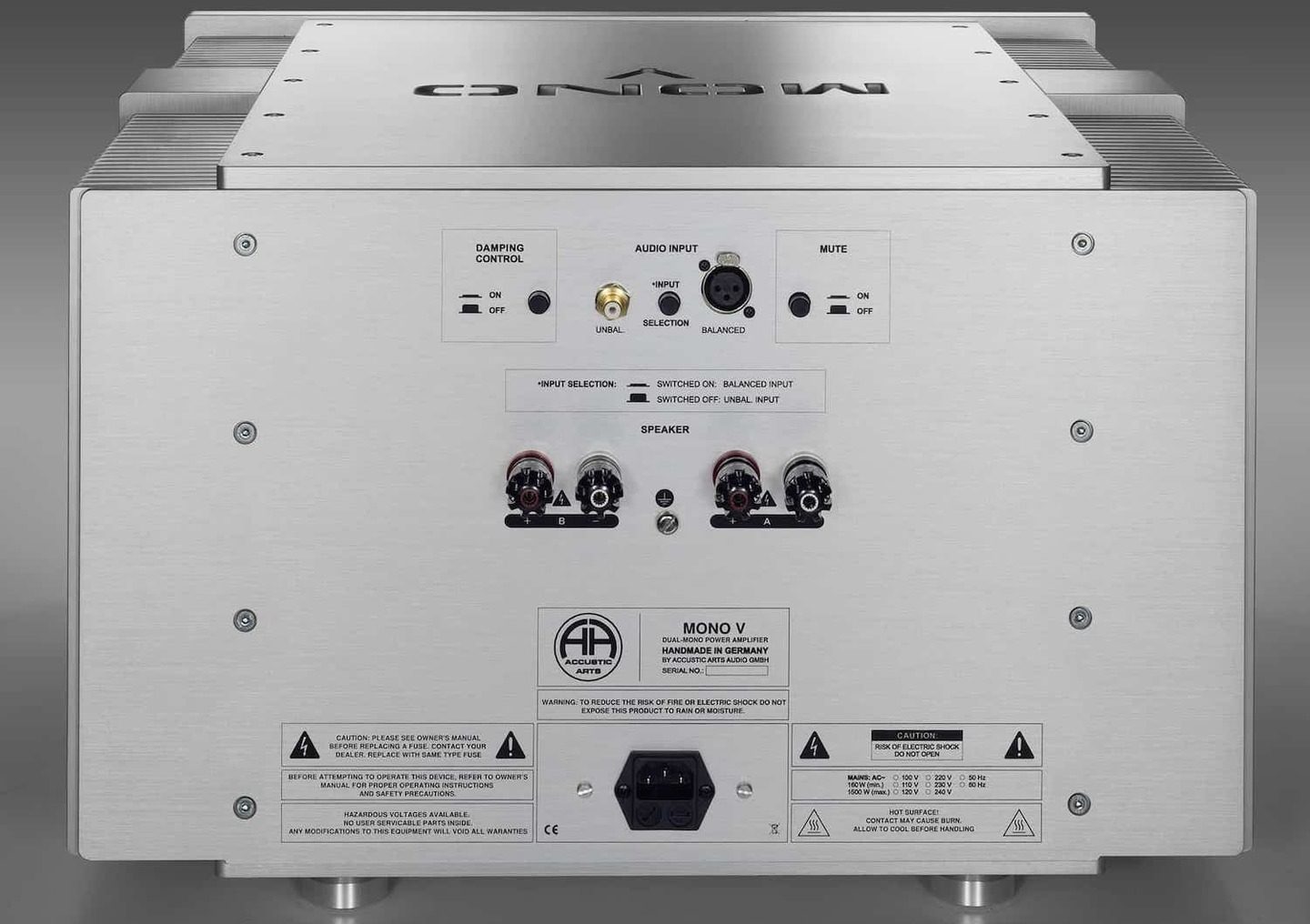 Accustic Arts engineers traditionally paid special attention to the damping coefficient, which they described as “extremely” and “very” high for the Mono V and Amp V. In addition, the Mono V uses switchable linearization of the damping factor.