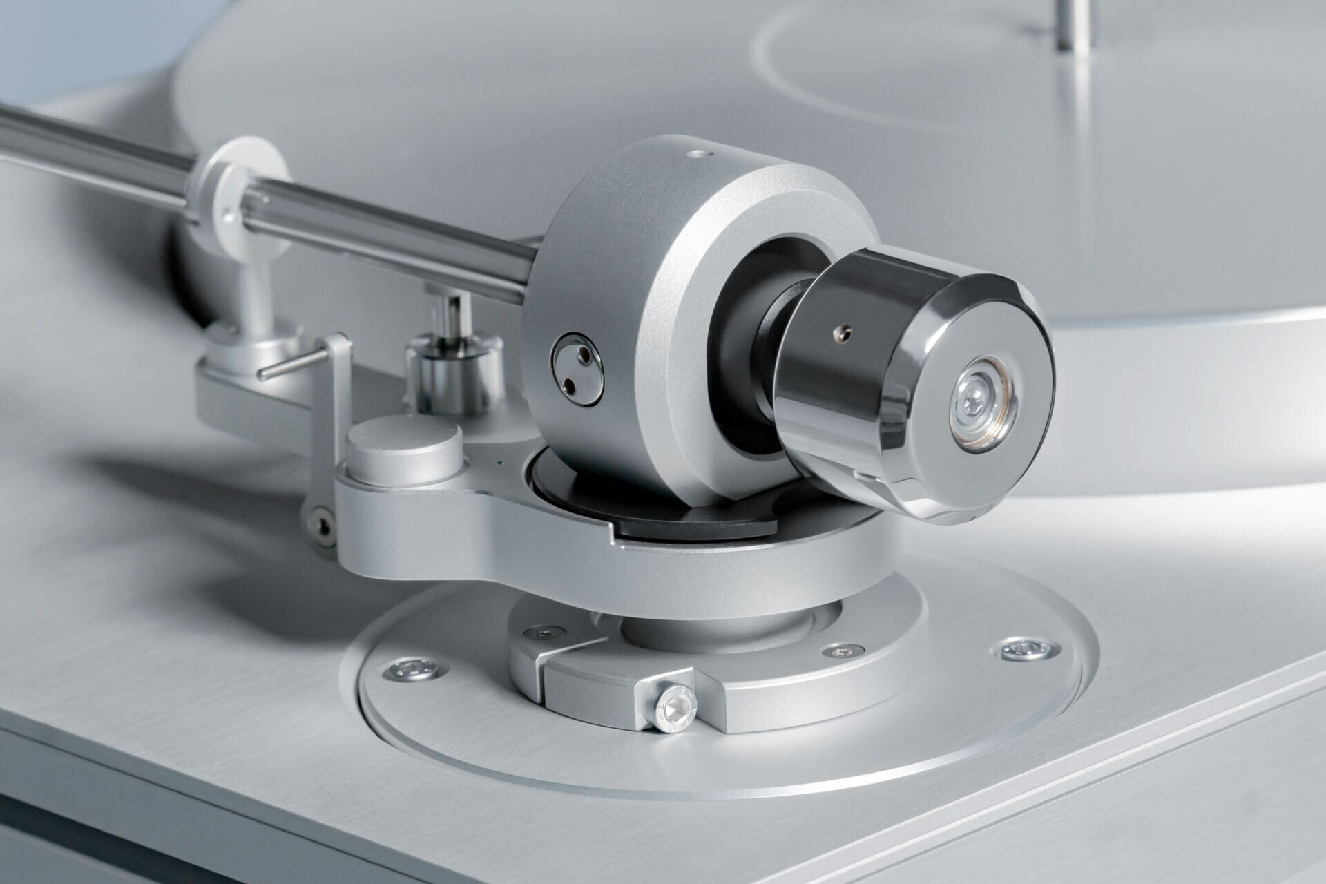 Straight 9-inch swivel gimbal is made of unidirectional fiber composite material combined with aluminum parts. According to Burmester, the arm naturally curves due to the headshell geometry.