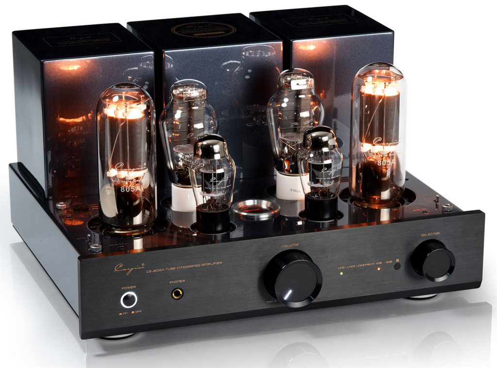 According to the company, the Cayin CS-805A tube integrated amplifier is based on the classic WE6SN7 output triodes in the voltage amplifier stages. The output driver stage uses 805A type 300B tubes.