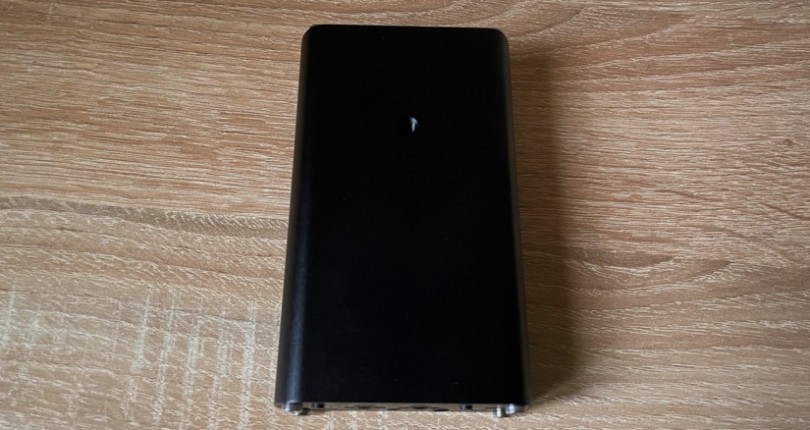 The design of the CEntrance HiFi-M8 V2 is impressive and brutal. It’s really good for self-defense on walks, but not like a knife, but rather like a brick. However, to me personally, he most of all reminded me of a roomy power bank . With the inscription “20th anniversary edition”. The matte black body of the amplifier is made of anodized aircraft-grade aluminum, the build is excellent, the edges are nicely rounded. It is not very large in size, especially in comparison with the first generation, it weighs only 250 g. But due to the fact that the body is thick, albeit short, it is not very convenient to wear it, I will say frankly. The device is by no means pocket-sized, and it is not ideal for transportation, you will have to agree to a compromise.