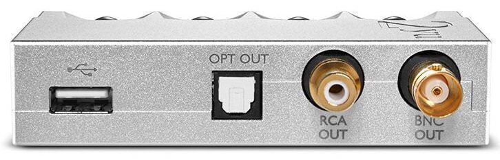 Two slots for SD cards in 2go (the maximum capacity of one card is up to 2 TB) turns it into a server. The 2yu itself, connected to the 2go, adds digital connectors: optics, coaxial and BNC at 50 and 75 ohms, as well as USB A.