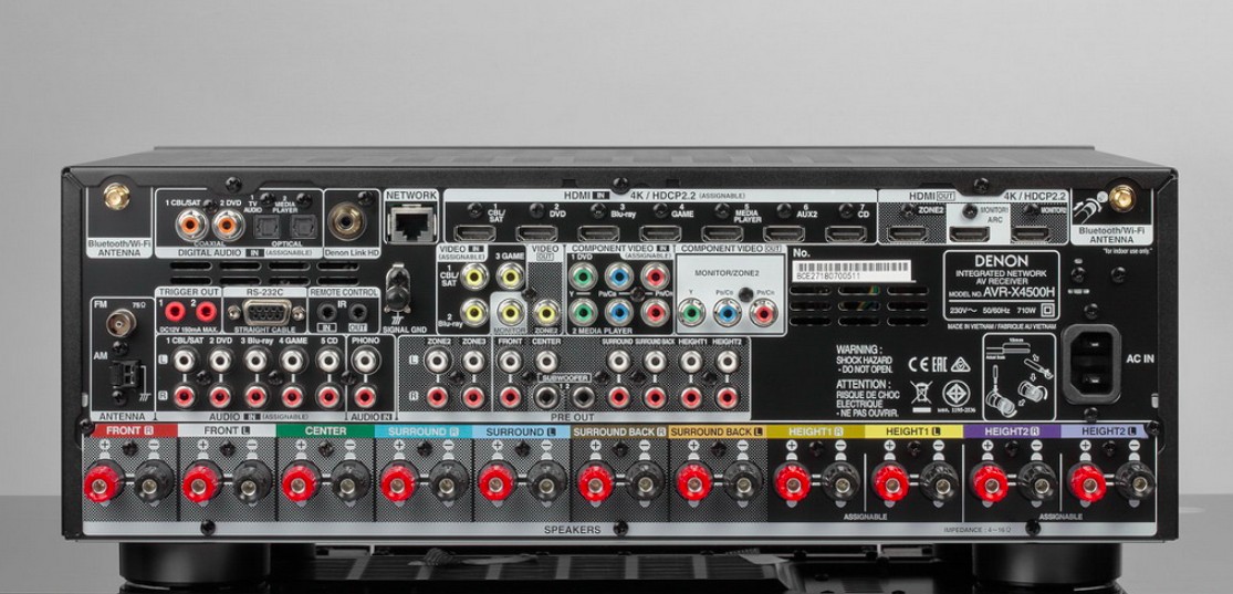 The Denon AVR-X4500H is a 9.2 configuration AV receiver equipped with decoders for all the latest surround formats. With nine built-in power amplification channels, the device allows you to build a home theater system for sounding a fairly large room at no extra cost. And by adding an external stereo power amplifier based on this AV receiver, you can create an 11.2-channel system.