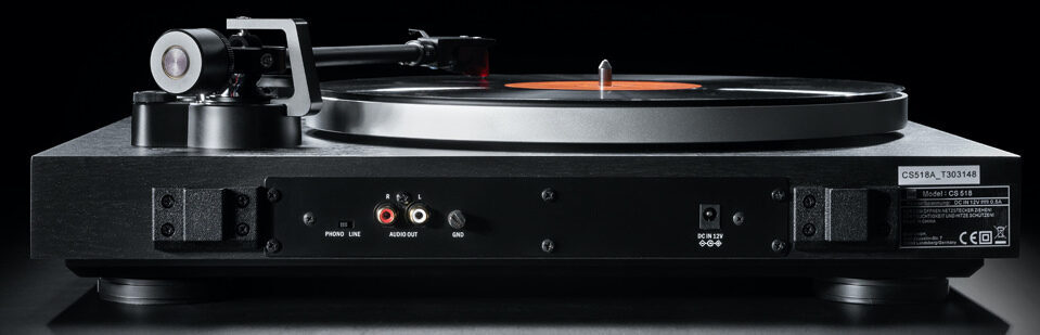 The Dual CS 518 belongs to the vinyl playback systems verified for decades. This is a classic belt drive from a DC motor. The steel axis of the disc rotates in a brass glass – these parts are made with high precision.