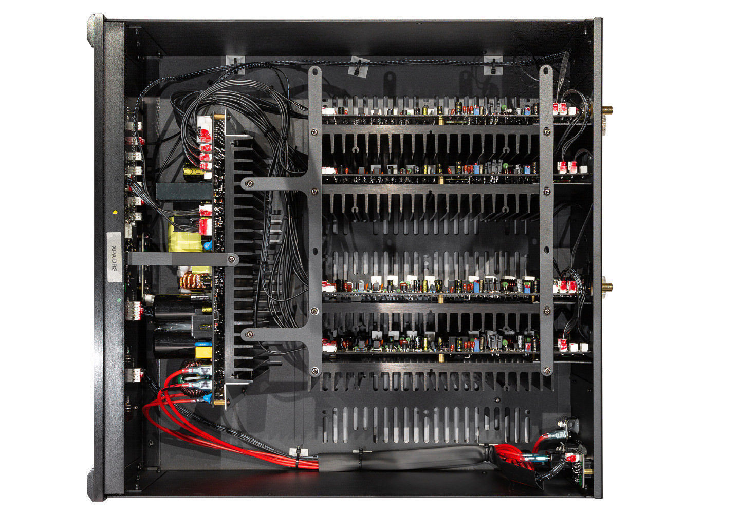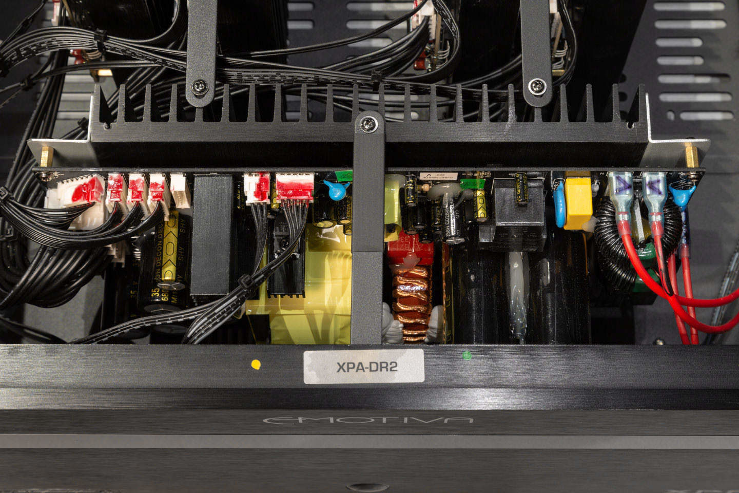 In addition to the balanced circuitry, the Emotiva XPA-DR2 can boast of another advanced solution: its amplifier modules operate in class H. In fact, this is a completely traditional class AB – only on steroids in the form of a dynamically varying supply voltage. Up to a certain volume level, it works in pure class AB, and then the increase in the signal is accompanied by an increase in the supply voltage, which gives the amplifier a multiple power reserve.