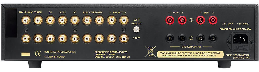 The novelty is equipped with a separate AV input, and you can choose fixed or variable gain at the line output – this will come in handy if, for example, the Exposure 3510 will work with frontal home theater speakers. The input selector and volume control have been further optimized according to the manufacturer to reduce crosstalk. A hybrid power supply was designed specifically to provide the Exposure 3510 with “very low noise on the power rails to the amplifier stage”.