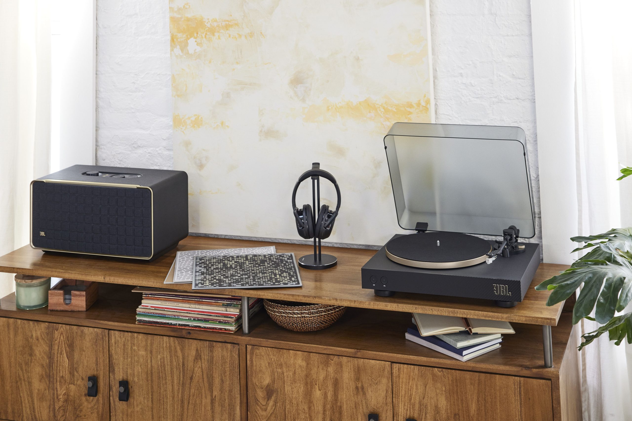 JBL Spinner BT is JBL’s new turntable with a lively design that makes it possible for listeners to enjoy their discs wirelessly without sacrificing sound quality. It simply pairs with portable speakers, soundbars and headphones via Bluetooth for wireless vinyl playback, with aptX HD coding that ensures the authentic sound from discs in adventures.