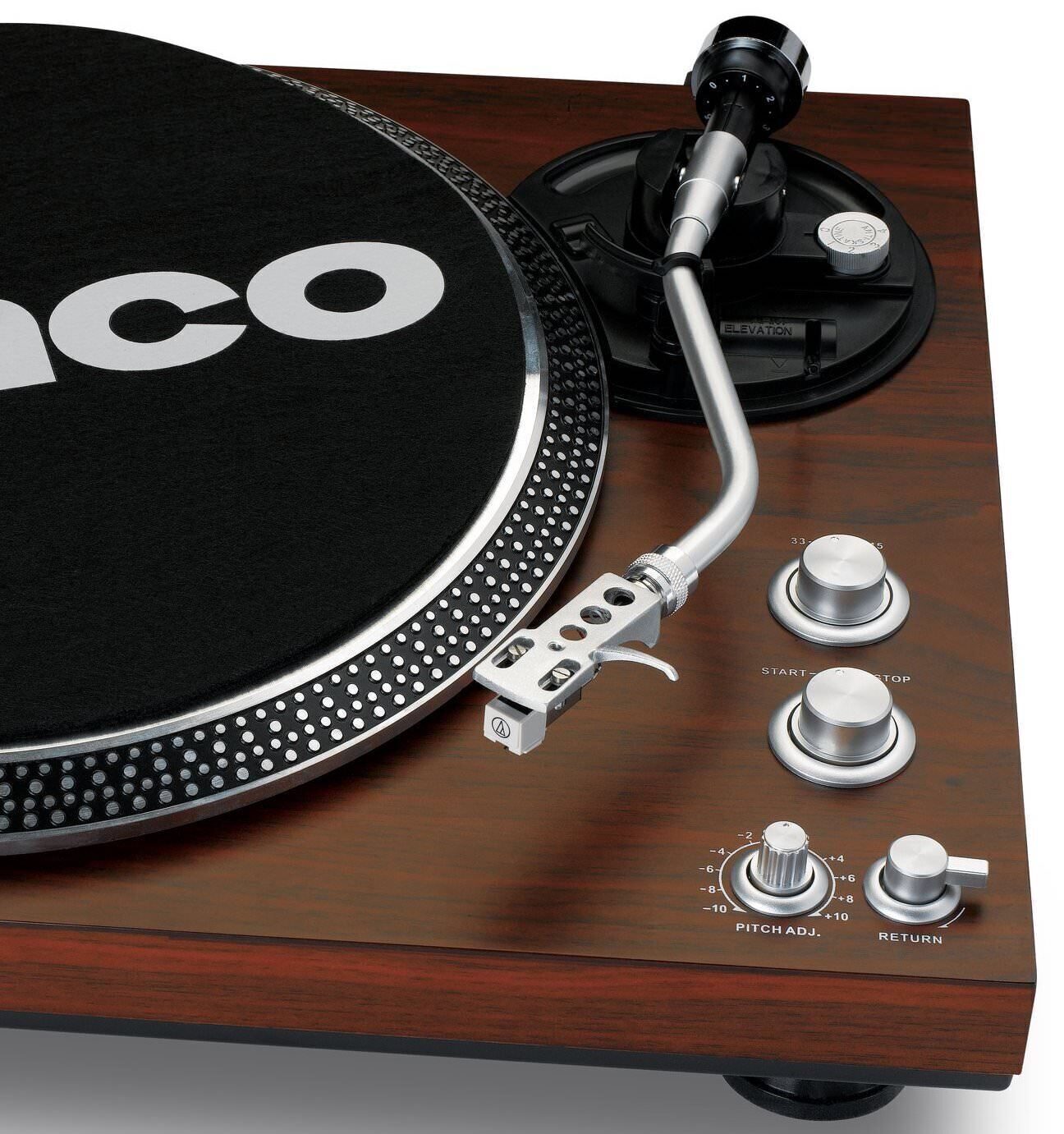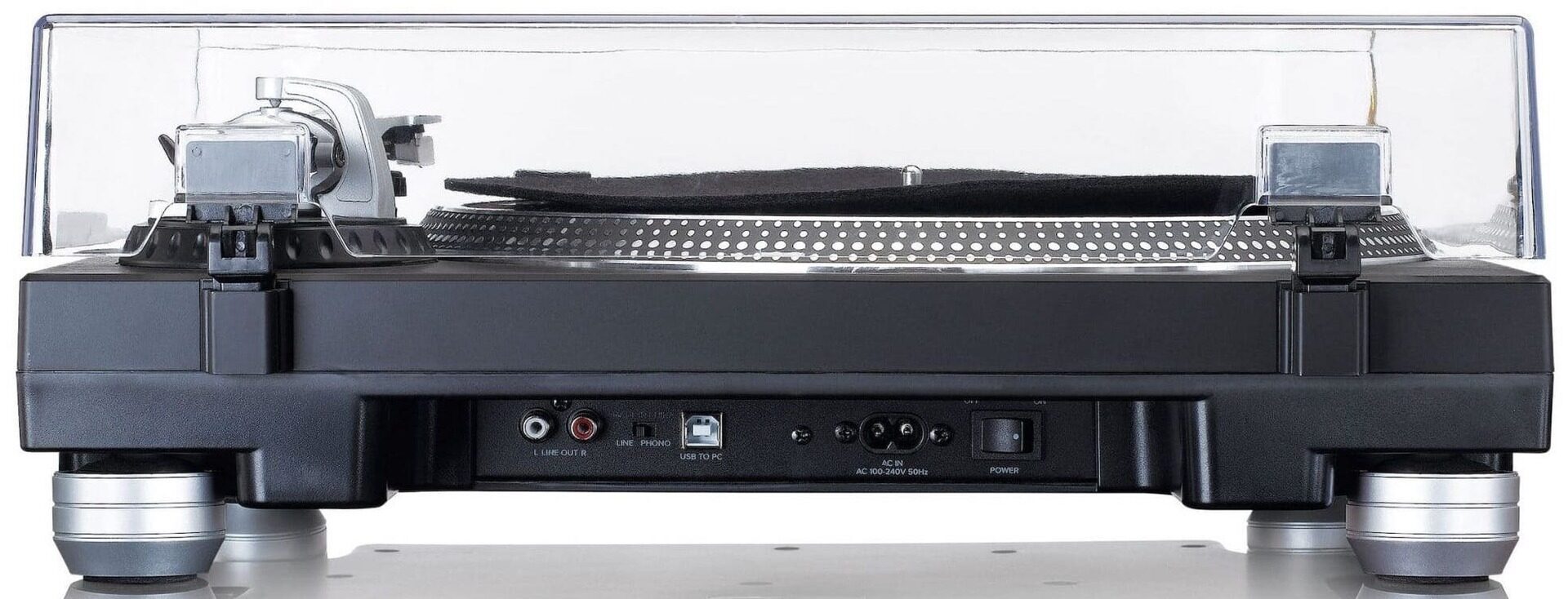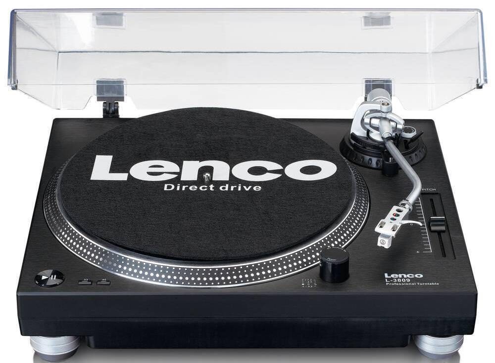 The Lenco L-3809 is equipped with a direct drive and a full-size aluminum disc. The turntable can be connected directly to a mixer or stereo system using the built-in phono stage. Includes Audio-Technica cartridge.