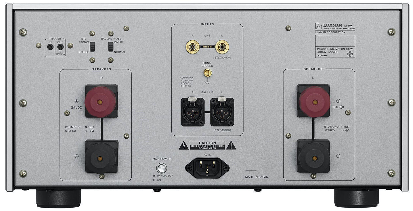 As stated, the high damping factor (710) will allow you to cope with even very complex columns. There are 12V trigger inputs and outputs to work with other components. The device will go on sale in February 2022. The Luxman M-10X Power Amplifier had a suggested retail price of $19,995 in the US.