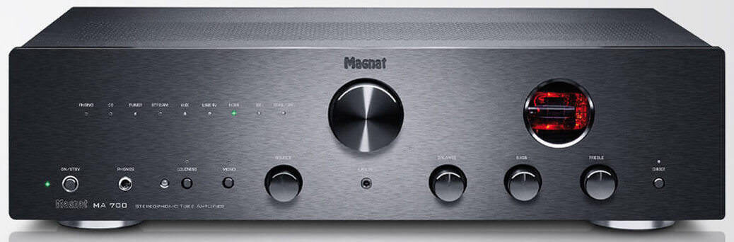The Magnat MA 700 hybrid stereo amplifier was created with a view to beautiful sound and high power headroom. To cope with this task, the developers used both a radio tube and transistors in the circuit.