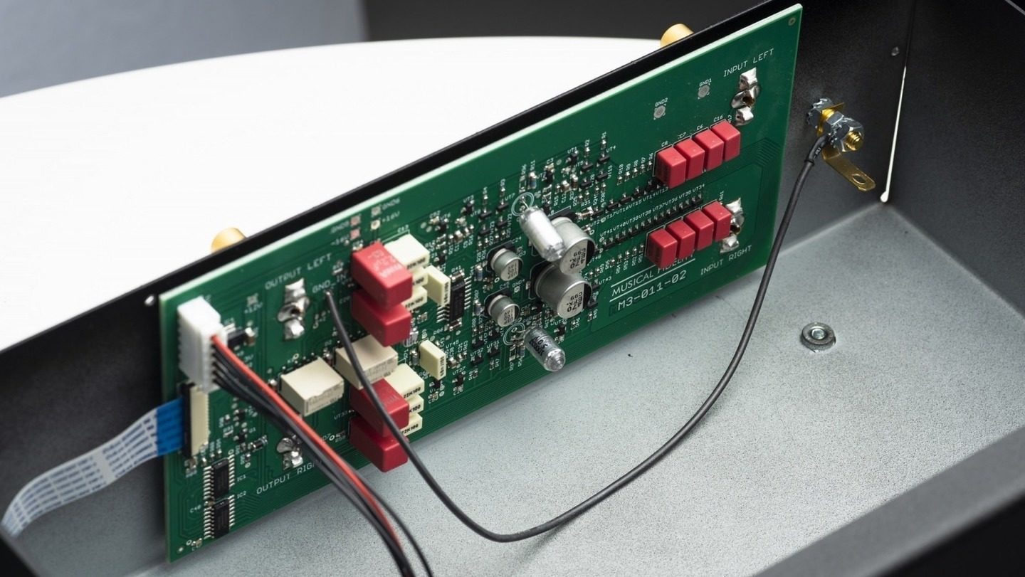 The fully discrete M3x Vinyl circuit works on the principle of split-passive equalization, whereby passive filters in separate amplification stages are responsible for correcting the RIAA curve.