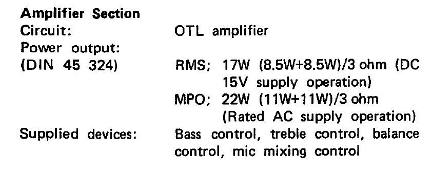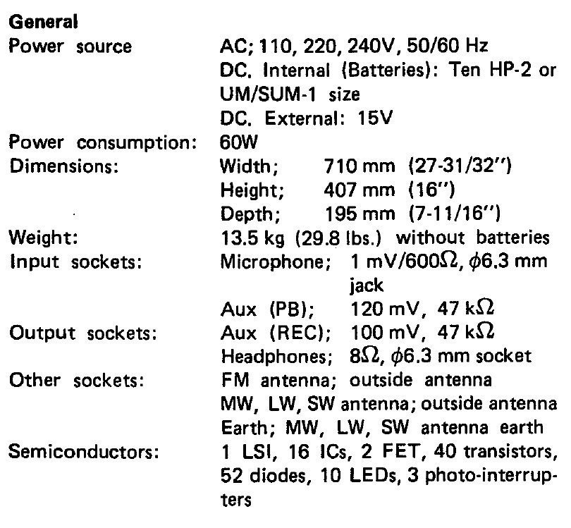 3. Tuner FM \ AM analog, without any bells and whistles. The sensitivity is good, the stereo mode is confident. But, as mentioned above, if the FM range is extended, then it is not very convenient to tune the stations, because they are very close to each other on the scale. Below are the tuner parameters from the service manual for the VZ-2500 model.
