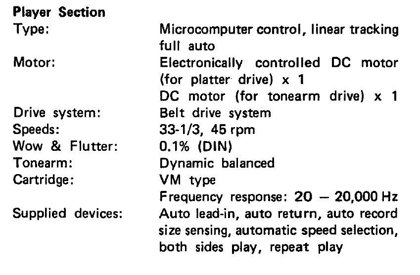 LP turntable parameters: