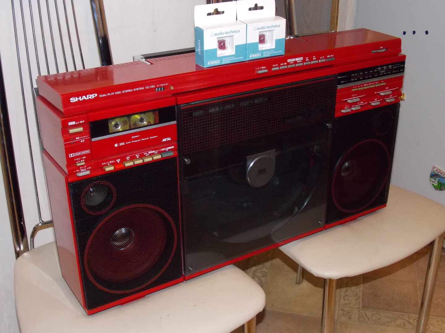 2. Version for the domestic Japanese market – Sharp VZ-V20 . The body color is silver, the woofers are red. Power supply only 100 V. Tuner with extended range 76-108 MHz.