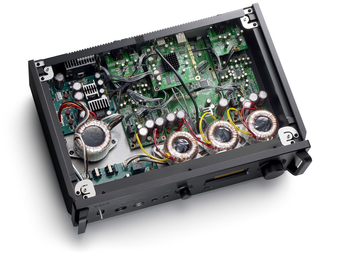 All circuitry of the UD-701, as well as of the AP-701 amplifier, conforms to the “dual mono” principle. The high resolution analog preamp circuits use Teac-QVCS technology. With a THD of 0.005%, the UD-701 provides a signal-to-noise ratio of at least 110 dB. Also, the novelty has received a high-quality balanced headphone output.