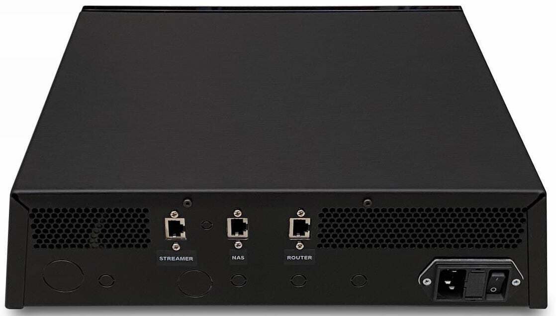 Interestingly, the developer has assigned its own functions to each of the three RJ45 connectors on the rear panel of the novelty. One of them is the router input for connecting to the local network. But the other one was recommended for NAS, server or Roon Core device like Totaldac d1 player. The third is the streamer input. Of the Totaldac products, d1-streamer-mk2 was recommended.