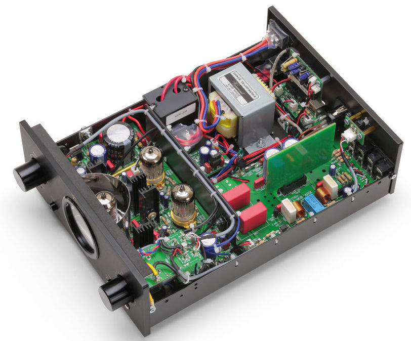 The headphone amplifier, in addition to semi-conductor elements, uses 2 low-noise E180F / 6SCH9P pentodes, and an ECC82 vacuum triode.