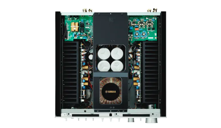 Yamaha A-S2200 amplifier is based on a fully balanced architecture with resilient suspension circuits to minimize the effects of vibrations in the power stage (which uses MOSFET) and incorporates a separate headphone amplifier. Yamaha states that the result of this approach to circuit design and material selection is a very natural stereo image. The A-S2200 uses high-purity copper internal wiring with large cross-section conductors to transmit the signal to the speaker terminals and to ground (2.7mm diameter), components that have been deliberately chosen to minimize high-signal signal resistance. . In addition, it has high quality polyphenylene capacitors in the signal path, a custom annular transformer with four capacitors of 20.