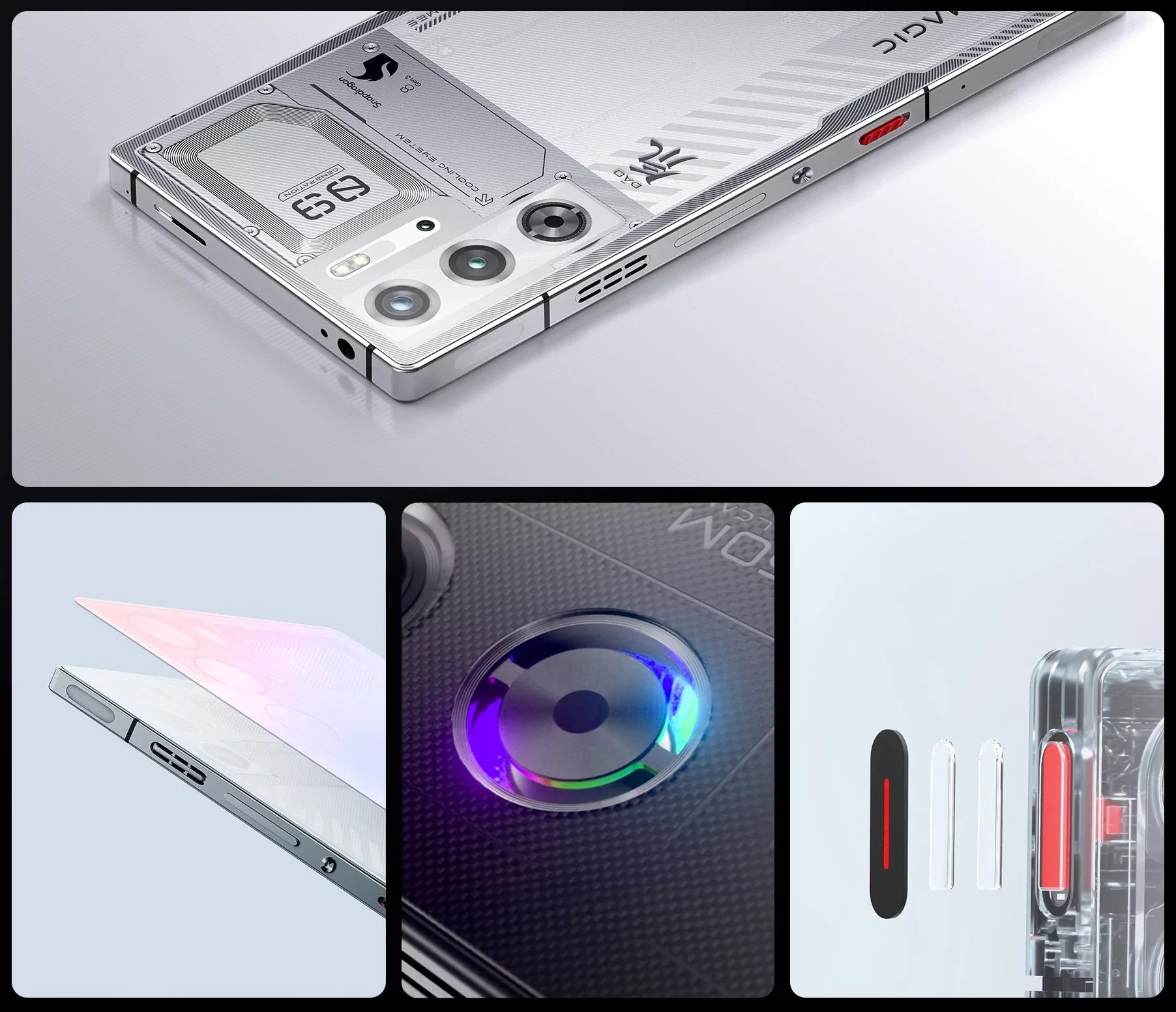 On the back panel there are three cameras: main and wide-angle with a resolution of 50 megapixels and macro with a resolution of 2 megapixels. The front camera has a resolution of 16 megapixels. The devices run proprietary firmware RedMagic OS 9.0 based on Android 14.