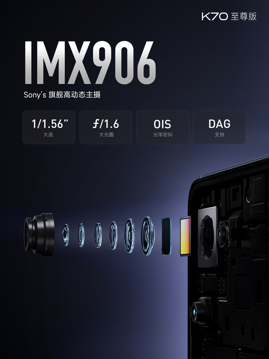 Redmi K70 Ultra received a main camera of three modules. The first is built on the flagship 50-megapixel Sony IMX906 sensor of 1/1.56-inch optical format. This module implements the OIS system and F/1.6 aperture. And the optics that work with the sensor itself consists of 6 lenses. The focal length of this module is 23mm.