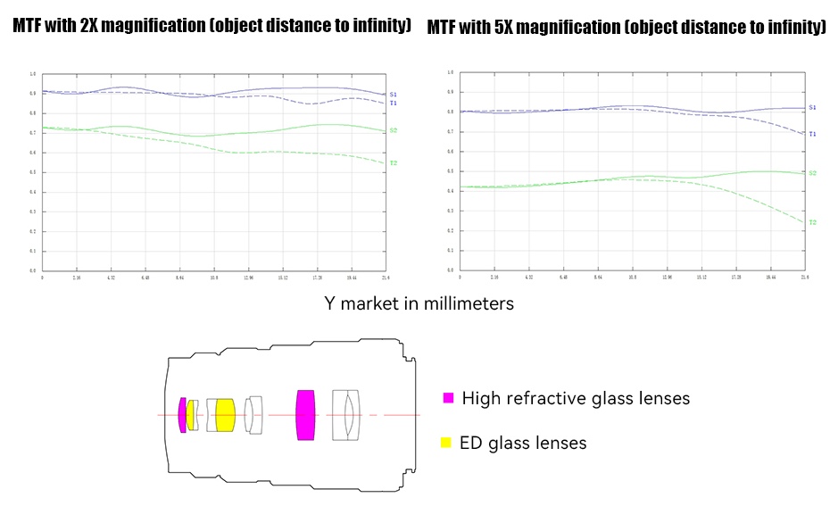 The optical design of the AstrHori 25mm F/2.8 2x-5x macro lens is as follows: