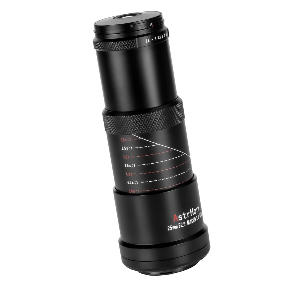 AstrHori has released a new advanced macro lens for most popular full-frame mirrorless cameras: Sony E/FX/RF/Z/L-mount. The AstrHori 25mm F/2.8 2x-5x lens weighs 474 grams and has 10 elements in 7 groups (two high refractive index elements and two low dispersion elements) in its optical design.
