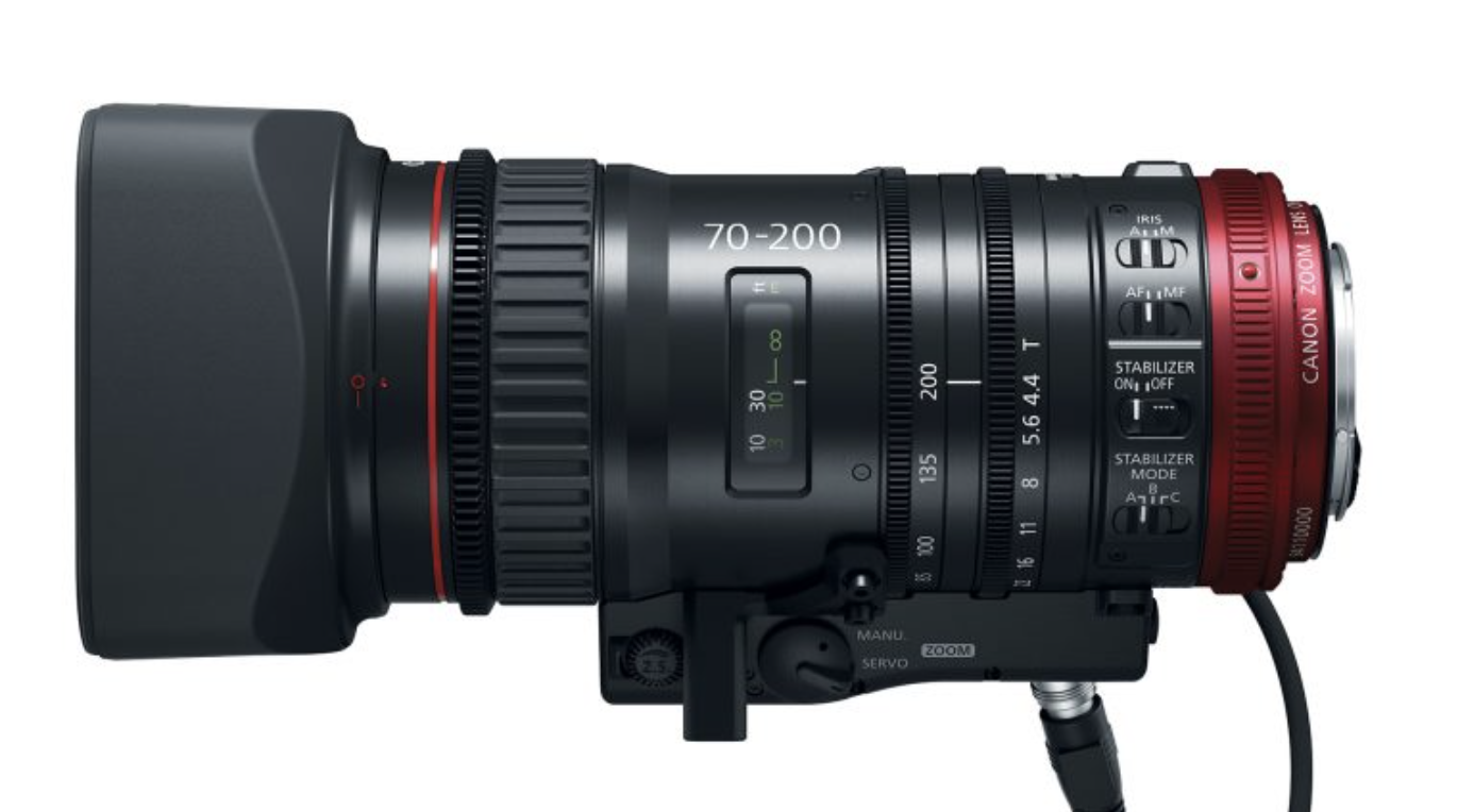 Canon CN-E 70-200mm T4.4 L IS KAS S Zoom cinema lens. That was a more expensive but slower-aperture telezoom, priced at $5,000. However, a servo motor was included with that lens.